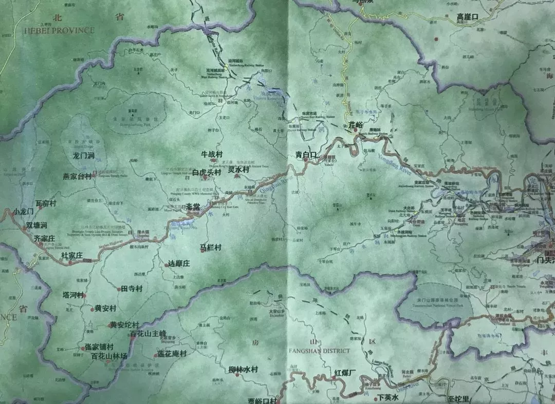 上午從規(guī)劃局出發(fā),司機崔承光同志開著當(dāng)時性能較好的“嘎斯一69”吉普上路,沿著海淀區(qū)山后公路,到昌平陽坊鎮(zhèn)北跨過坦克靶場進山,高崖口,馬創(chuàng)泉折向南行到達永定河邊的芹峪,(當(dāng)時還沒有現(xiàn)在的三雁公路,只得繞行昌平高崖口)從芹峪折向西南到青白口村,經(jīng)青白村口進入清水河谷,半天的顛簸,中午才到達齋堂,崔承光同志送我們到達齋堂后,隨即原路返回北京。從齋堂開始了我們的步行調(diào)研活動。