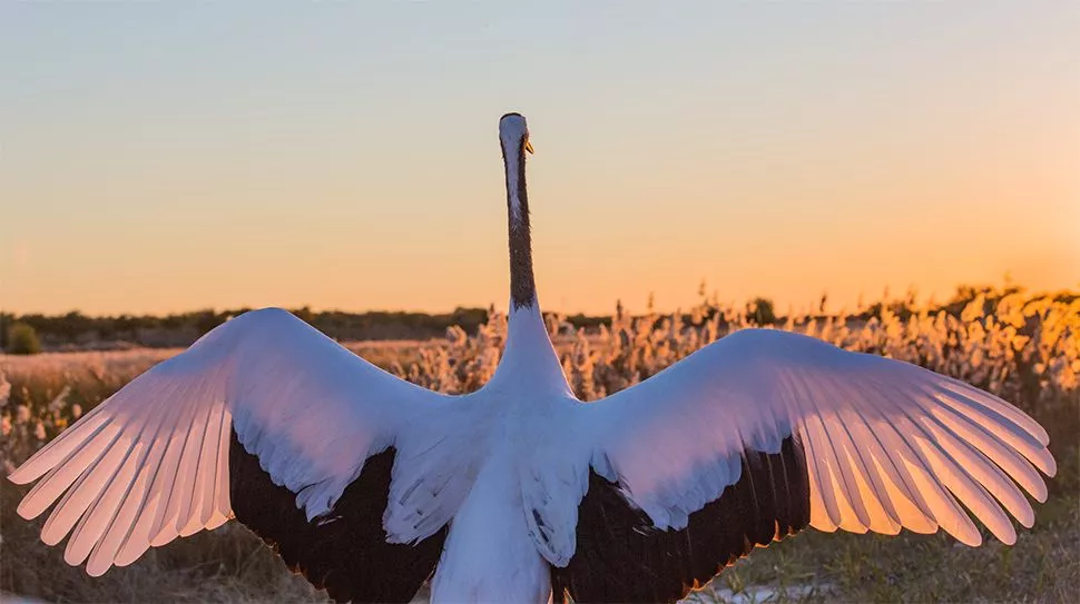 早前往代欽塔拉拍攝【五角楓晨曦】風光,在這里我們也可以登臨高低,俯瞰大片的五角楓拍攝,日出之后,如果運氣好會有大群放牧的牛羊經(jīng)過,可以在山坡上俯拍(廣角和長焦是必備的),成群的牛羊會在這里走過,為五角楓的紅葉增添了更多蒙古特色,美不勝收!后前往向海用午餐,中午稍作休息之后,前往【向海保護區(qū)】(含門票+景交車)拍攝,向海自然保護區(qū)內(nèi)野生保護動物種類繁多,最值得一看的是丹頂鶴群,下午有免費的【丹頂鶴放飛】表演拍攝,后我們也會安排專場放鶴表演給大家自由拍攝,幫助大家出好片。這里珍稀禽類有丹頂鶴、白枕鶴、白頭鶴、灰鶴、白鶴、天鵝、金雕等,成為遠近聞名的“鳥類保護區(qū)”,拍攝結束后還可以近距離拍攝丹頂鶴靜態(tài)美,金秋時節(jié),金黃的蘆葦蕩、日落之前的黃昏光暈,都是很好的攝影創(chuàng)作題材。 ?。合蚝?/p>