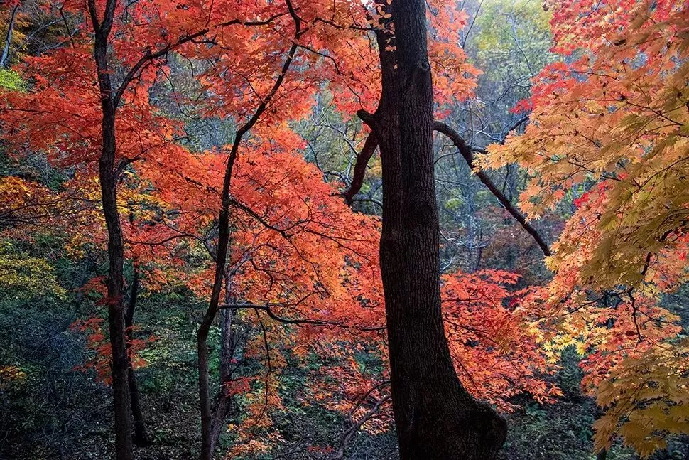 進入十月,五角楓變色顯著增多,10月11日前后進入正紅階段,最佳觀賞期開始,10月26日前后觀賞期基本結束。
