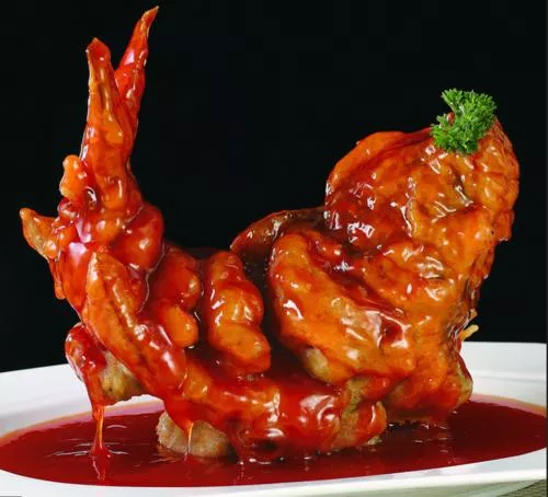 糖醋四孔鯉魚是徐州久負(fù)盛名的傳統(tǒng)名菜,因其歷史悠久,有眾多傳說。一般鯉魚均是兩個(gè)鼻孔,惟銅山縣、沛縣沿微山湖一帶所產(chǎn)鯉魚為四個(gè)鼻孔,肥美勝過黃河之鯉?!疤谴佐~”吃起來外酥里嫩,“紅燒魚”吃起來,外潤里嫩。1990年春節(jié),徐州詩詞協(xié)會(huì)在宴春園飯店請海外詩人雅集,席間上了一道糖醋四孔鯉魚,有人嘗后即席賦詩云:“魚兒躍躍喜迎賓,四孔欣張來報(bào)喜。春滿彭城客欲醉,酸甜酥嫩總宜人?!钡莱隽颂谴姿目柞庺~外酥里嫩、酸甜味濃的特點(diǎn)?!驹敿?xì)】