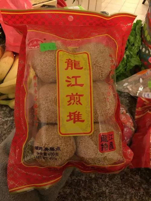 龍江煎堆是佛山順德一種傳統(tǒng)特色小吃,始制于明代廣東順德龍江鎮(zhèn),是指拳頭大小、油炸糯粉團(tuán),表面滿是芝麻的食品,也是廣東地區(qū)傳統(tǒng)年宵食品。佛山煎堆除了聞名的九江煎堆外,順德龍江鎮(zhèn)的煎堆也很出名。順德煎堆有很多不同的做法,但一定都是圓球形的,所以歷來有“煎堆轆轆,金銀滿屋”的吉祥意蘊。順德煎堆基本都是糯米粉搓合黏米粉搟薄作皮,爆谷花與炸花生仁加糖漿拌勻,捏成拳頭大小的球狀,將薄皮包餡捏緊,表面撒滿芝麻,入油炸至金黃色即成。其特點是色澤金黃,外形渾圓中空,口感芳香酥脆體積膨大滾圓,表皮薄脆清香,而又柔軟粘連,餡又
