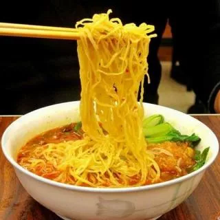 杠子面是以杠子壓制而成的作法而得名,面條以其獨特的爽滑勁道讓人稱贊,是貴州興義久負盛名的具有地方風味小吃,根據(jù)中國手工面條三大傳統(tǒng)技法中的“壓面”和“切面”而綜合而成的特色面,全部手工制作,制作成品是滑、脆、鮮、香,其獨特的爽滑勁道讓人贊不絕口。它之所以爽滑除了有少份量的淀粉和在面里以外,還有最重要的一道工序—搟面,說是搟面其實是用一根胳膊粗的杠子壓,杠子的一頭固定在墻里,人騎在另一頭來壓,這樣壓出來的面,薄如紙,韌如綢,單碗下鍋,調(diào)料特殊,口味以酸辣為主,熱吃涼拌,均皆適口。興義杠子面尤其以舒記杠子面比