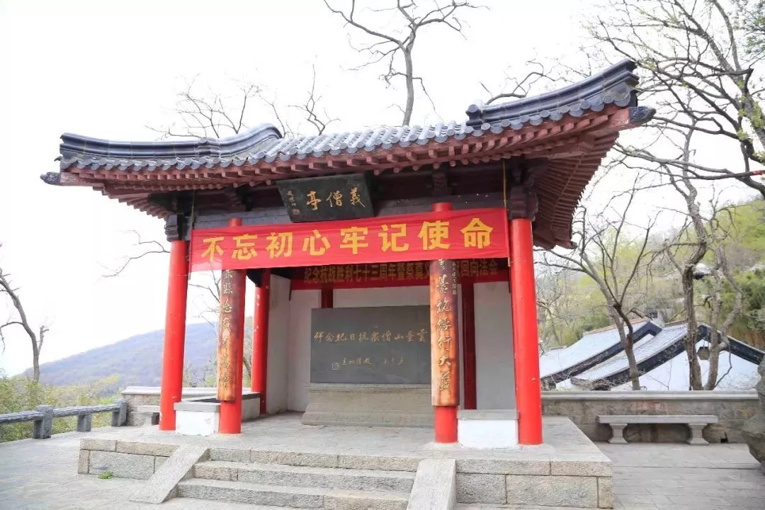 1992年,為紀(jì)念抗日戰(zhàn)爭中三元宮英勇犧牲的僧眾而建的“義僧亭”。紀(jì)念碑后的碑文記錄了1938年到1939年間,花果山僧眾抗擊日寇可歌可泣的英勇悲壯事跡。
