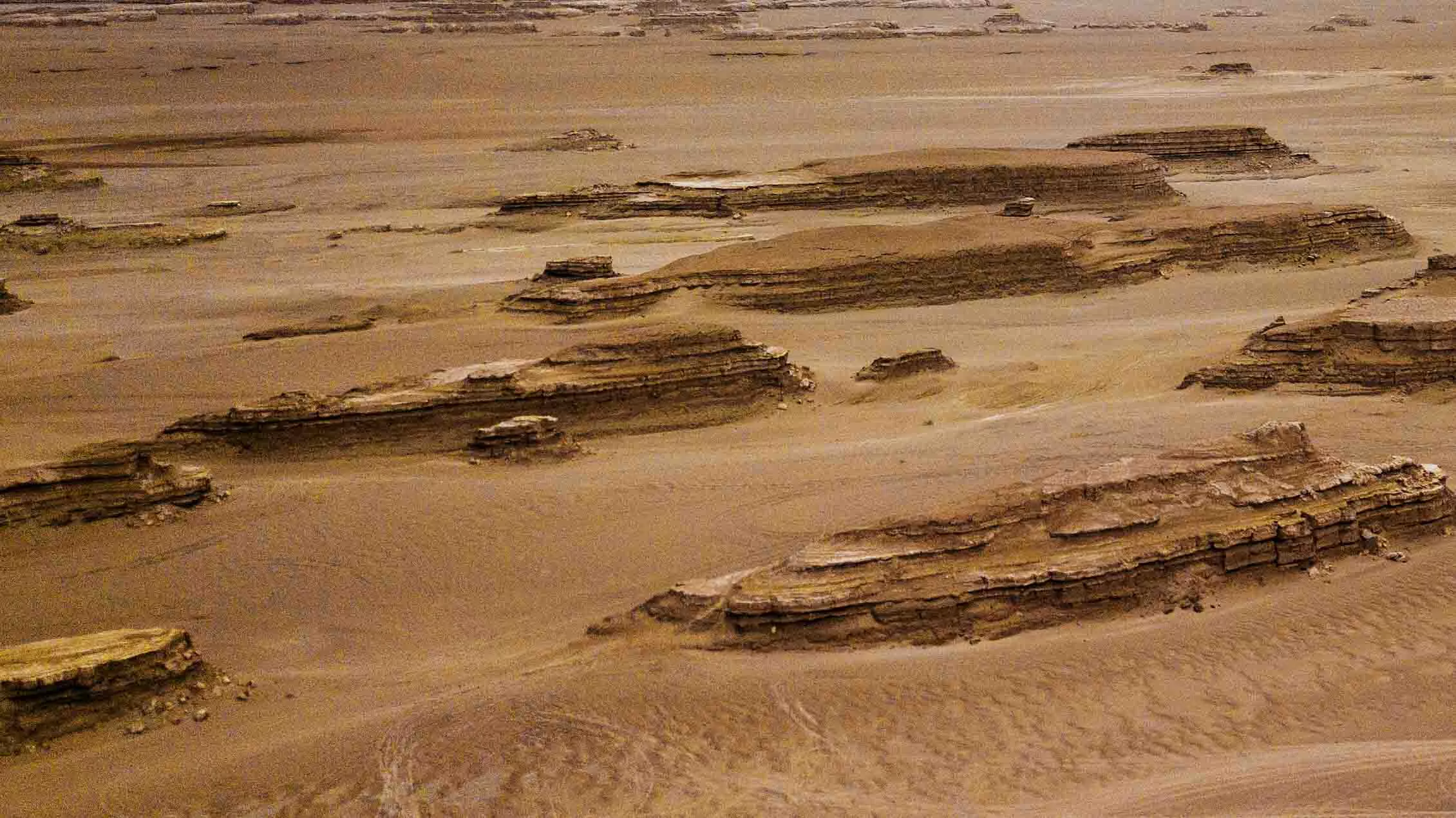 紅崖其實(shí)是雅丹地貌與丹霞地貌的混合,土丘呈現(xiàn)出的鐵紅色主要是由于土壤中含鐵成分較高。季節(jié)性流水交替沖刷過的干枯河道形成交錯(cuò)縱橫的溝壑。這樣特殊的地理地貌,與沙漠沙丘礫石遍布的火星地貌很相似。