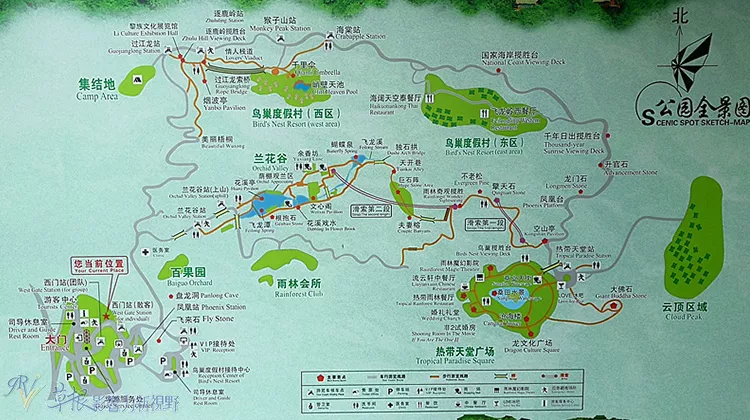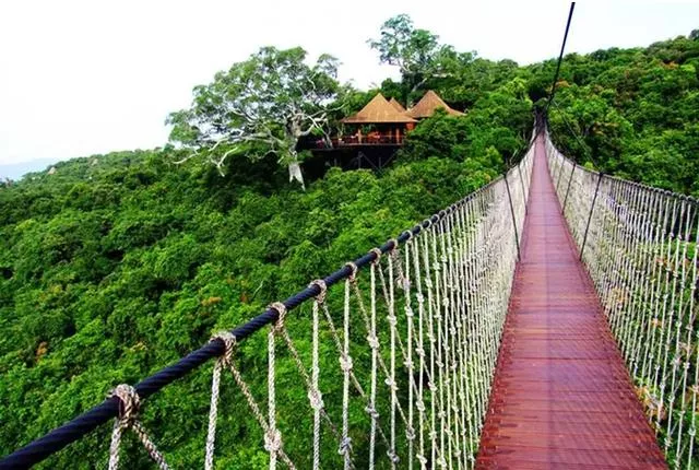 亞龍灣熱帶天堂森林公園,一個溫暖的名字,俘獲著萬千游客的腳步。它為國家4A景點,位于三亞市東南25公里處,環(huán)抱亞龍灣國家旅游度假區(qū),總面積1506公頃。游覽此地,有徒步登山和觀光車游覽兩種路線,一般游客都會選擇后者。乘坐觀光車從山下一路行進上山,沿途可抵達蘭花谷、煙波亭、過江龍索橋、鳥巢度假村(西區(qū))、千里傘、峭壁天池商業(yè)天街、滄海樓、龍文化廣場、大佛石等景觀,也即這里的主要打卡地了。不過游覽車有時會忽然來個過山車式的轉(zhuǎn)彎(山路逶迤),比較刺激。
