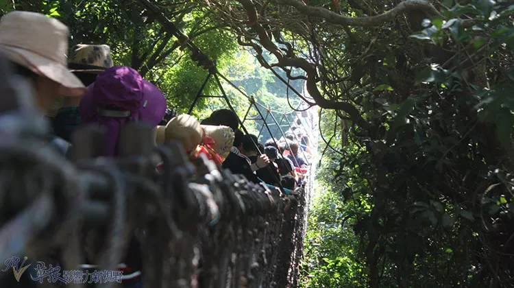 第二站,就是最有名的過江龍索橋了。它因舒淇葛優(yōu)主演的電影《非誠勿擾2》走紅,游客們不顧人擠人,也要走上一把。