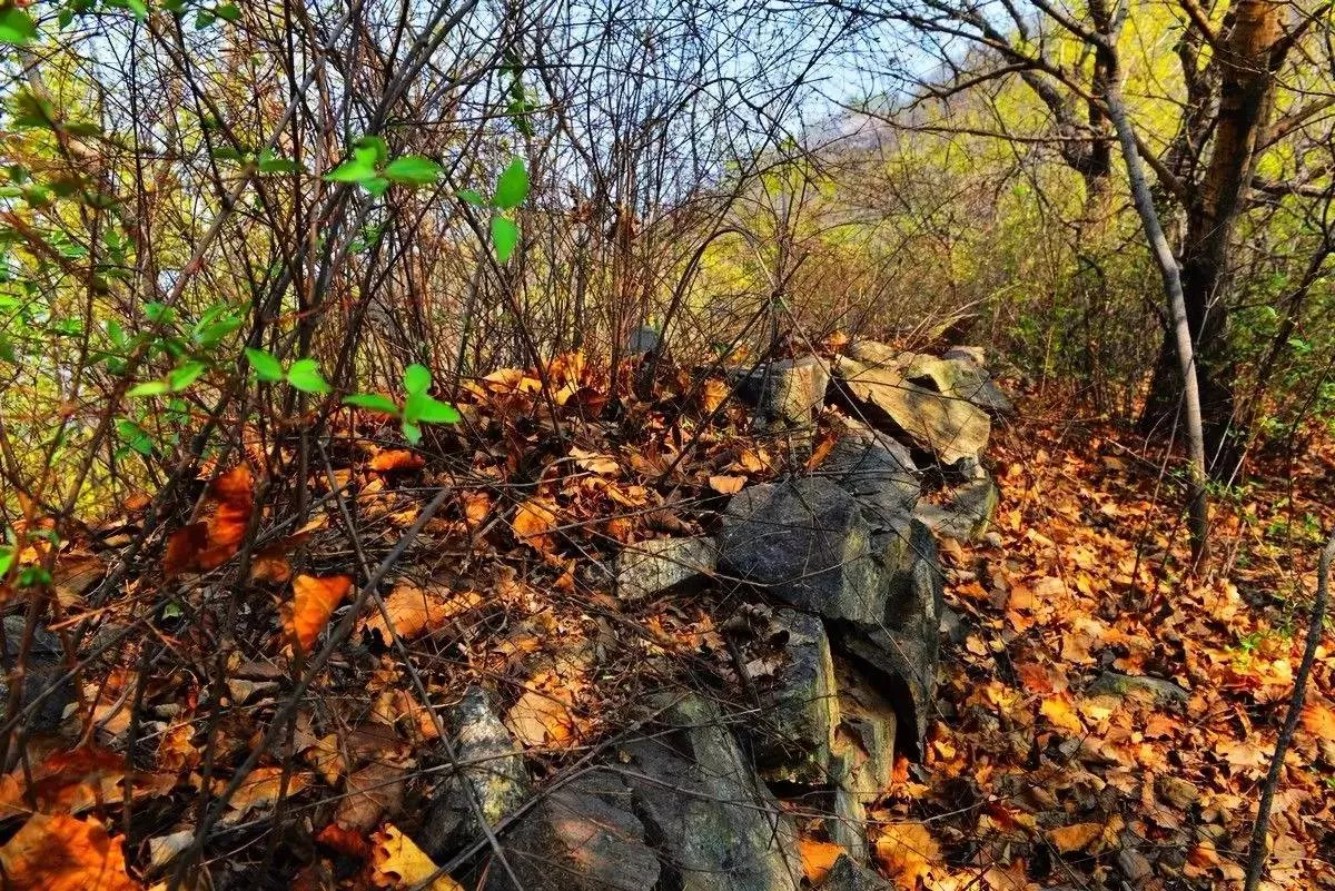 2014年文物專家考證過這段長城,他們斷定不是明長城,是北齊或更久遠(yuǎn)的長城,專家們沒作定論,把它的身世給懸起來了。我想,既然遵化段北齊長城大部分被明長城給迭壓了,那,這段比鷲峰山北齊長城更顯滄桑殘老的長城就應(yīng)當(dāng)是燕長城了。