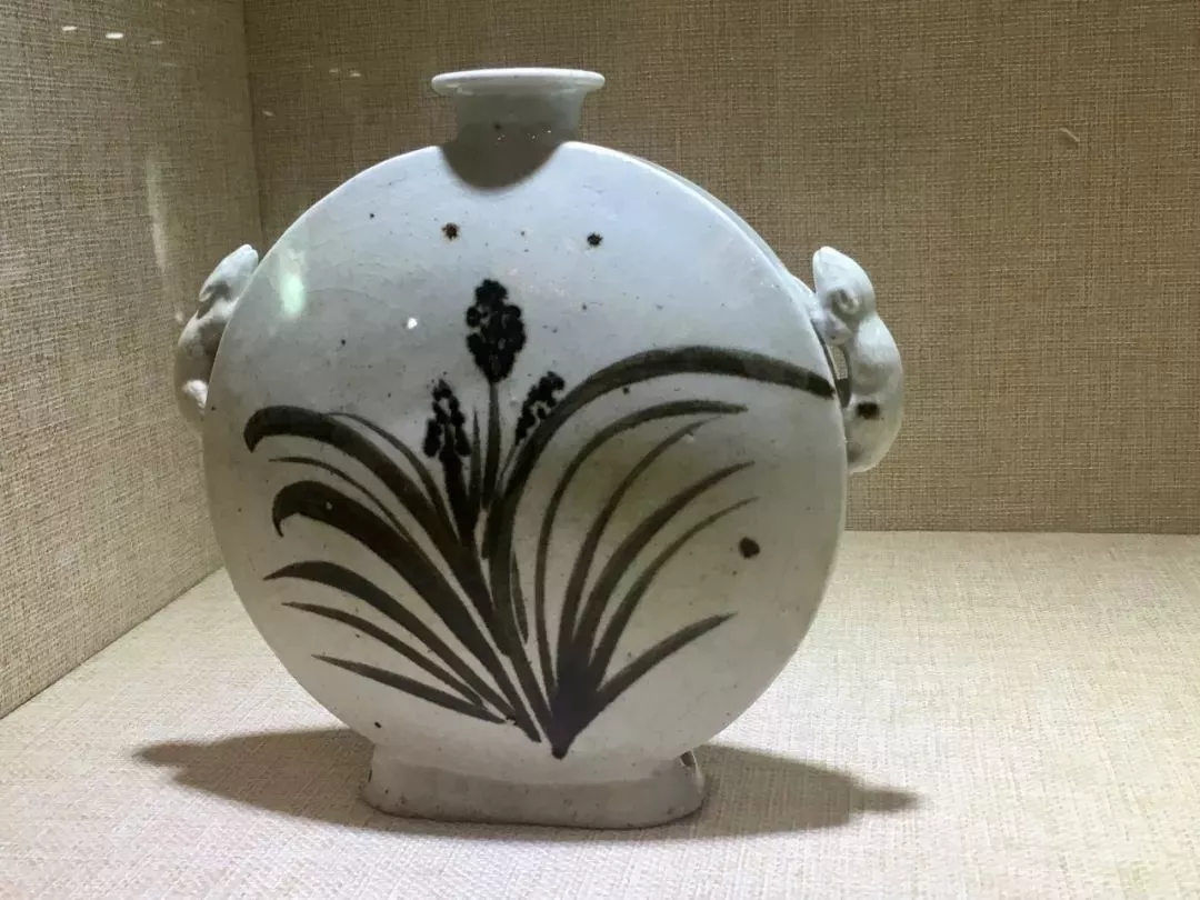 釉里褐蘭竹紋雙栗鼠耳扁壺