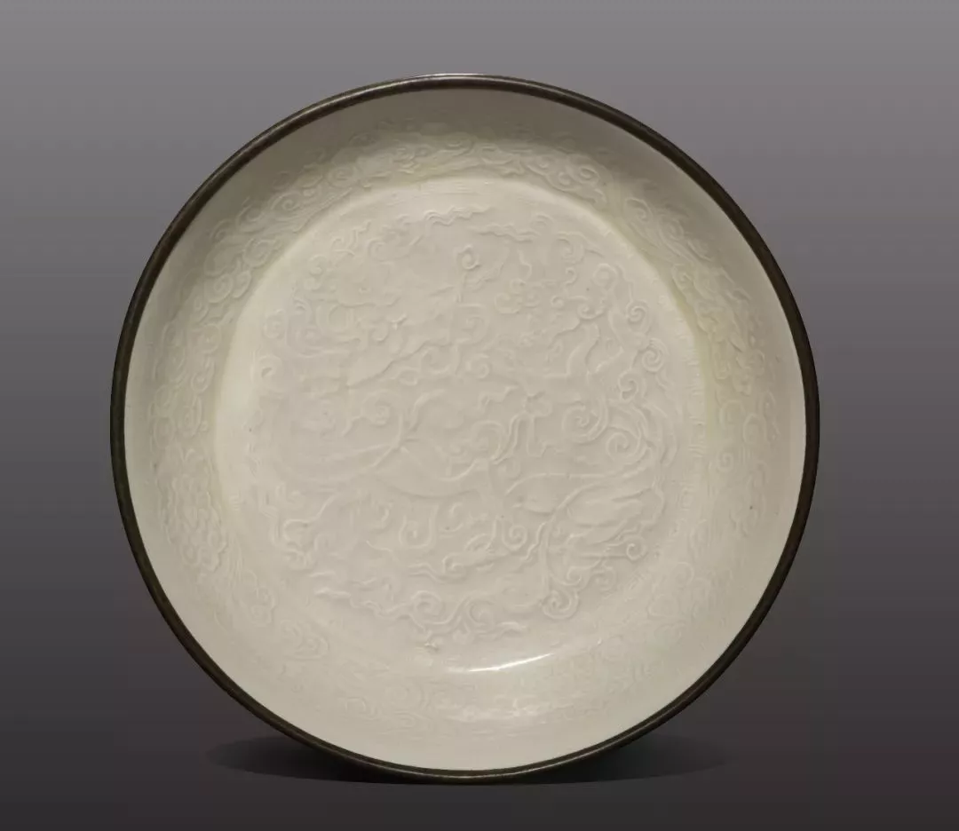 北宋-金 定窯 白瓷印雙螭龍紋洗