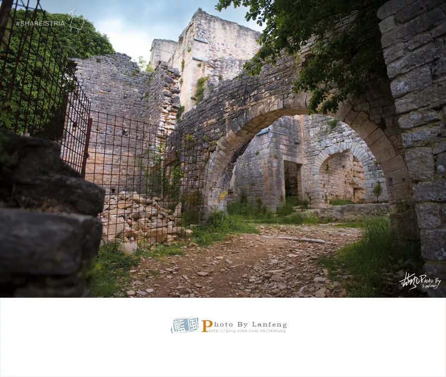 離開力木海峽,將近20公里左右的時候,遠遠就看到山谷中有一座廢棄的城堡。這也是我們那天行程中的第三站:Dvigrad,意思是雙城