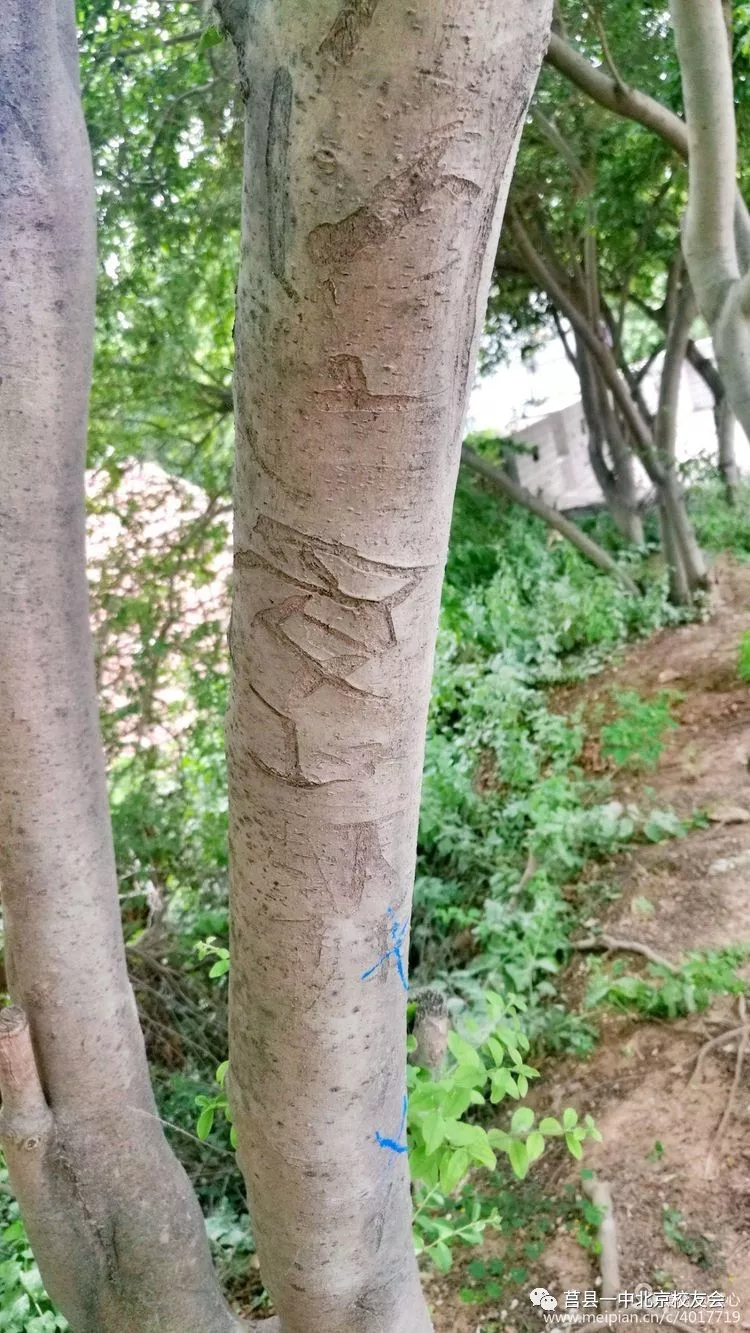 忽然被樹上刻的字吸引。這些藝術(shù)家出于創(chuàng)作沖動,不計條件簡陋,毅然決然把心事刻在樹上,供后來者瞻仰,是多么偉(sha)大(bi)的舉動。