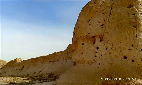 西騸馬城和東騸馬城相距70米。西騸馬城約建于西漢時期,在漢時為屯兵之地。城墻現(xiàn)僅存南85米、西40米的殘墻,城的輪廓大致可辨,東墻中間開城門,城門外有甕城,騸馬城一帶與馬是有很深淵源的,晉元康五年(295)設(shè)骍馬縣,一直到516年,存在221年。骍是赤色馬,今天的紅栗馬和金栗毛馬。骍馬本是西漢居延的一個屯田,晉代在現(xiàn)在騸馬城一帶設(shè)骍馬縣。這里是晉代骍馬縣駐地。這里也被有學(xué)者考證為是延壽縣駐地。