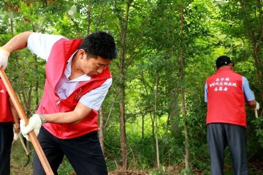 春風(fēng)拂古跡草木掩雄軀在永寧鎮(zhèn)利民街村東北角,有一座永寧古城墻遺址。今年因?yàn)橐咔榉揽氐仍?,這里長滿了雜草,把遺址標(biāo)識遮蓋住了。這不,前段時間,永寧鎮(zhèn)利民街村利民志愿服務(wù)隊(duì)發(fā)現(xiàn)了這個問題。他們組織了一次志愿服務(wù)活動,讓古城墻遺址標(biāo)識重新顯露出來。在利民街村東北角,志愿服務(wù)隊(duì)的隊(duì)旗迎風(fēng)招展。隊(duì)員們拿著鐮刀、鐵鍬等工具,分散在這片雜草叢生的區(qū)域里,割草的割草,裝運(yùn)的裝運(yùn),忙得熱火朝天。