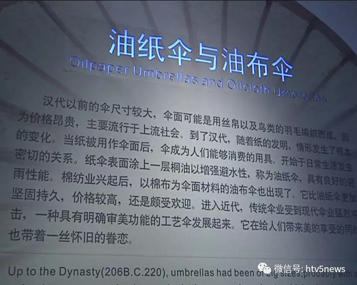 “中國(guó)傘博物館”的展館從傘因?yàn)槭芎扇~遮雨的啟發(fā)而一步步演變至今的,從荷葉到移動(dòng)的亭子,從移動(dòng)的亭子到蓋,到最后蓋變成了皇家用的華蓋。