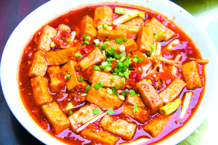 除了歷史悠久的古鎮(zhèn)文化外,羅泉豆腐也是一絕。羅泉豆腐用當?shù)貎?yōu)質(zhì)的山泉水、傳統(tǒng)的鹵水點制而成,具有細、白、嫩、綿的特點,可烹調(diào)出100多種豆腐佳肴。目前,資中正選址修建“豆腐一條街”,供游客欣賞羅泉豆腐的魅力。