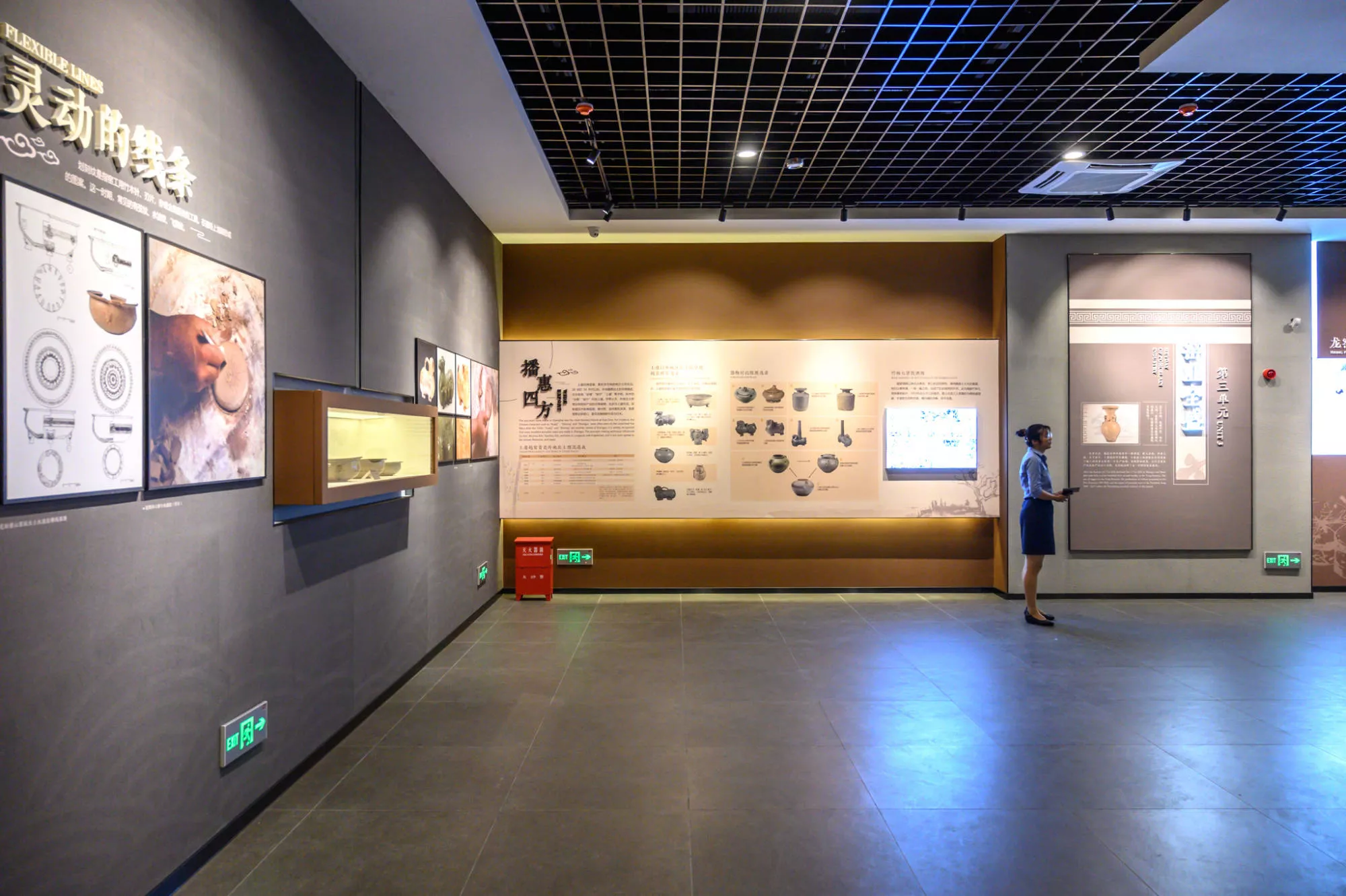 到這里游玩,除了參觀全國(guó)十大考古新發(fā)現(xiàn)之一的禁山窯址外,還有一座極具科普意義的陳列館,即"上虞越窯青瓷陳列館",也是到鳳凰山考古遺址公園必打卡的去處,整座陳列館的設(shè)計(jì)極具線條感,尤其是外圍的那條長(zhǎng)廊,處處散發(fā)著古香古色的氣息,吸引了不少人在這拍照。