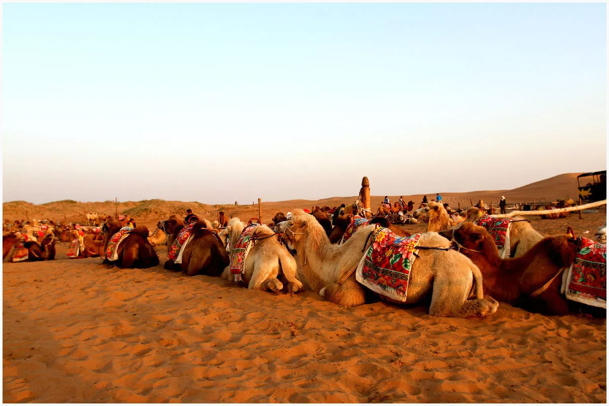 門口有一大片蒙古包提供游客住宿,我們團了套餐,騎駱駝,各種姿勢,各種自拍,因為是第一次見到這么大規(guī)模的沙漠,興奮地姿意地懶在沙灘上,隨地而坐,或躺或跳,觀天看沙,很有閑趣。