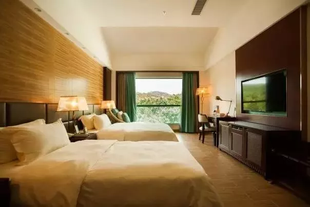 這里超大的雙人房,窗外可以望到山景,
