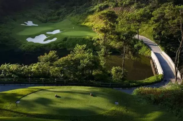 該球場的設(shè)計為十八洞國際標準高爾夫球場,十八條標準球道在地勢形態(tài)豐富的山坡湖邊、林中延伸,使每一個洞在擊球策略和景觀上都充滿挑戰(zhàn),出人意表。