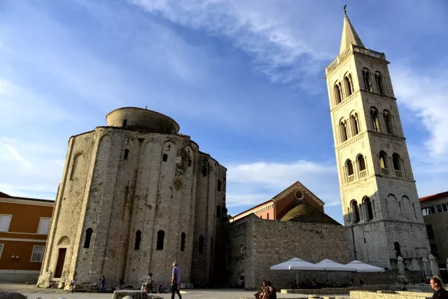 扎達爾,作為伊利里亞各部落幾百年的中心和達爾馬提亞地區(qū)千余年的都城,自然積淀了豐碩的精神和物質(zhì)文化遺產(chǎn),這一方面在老城保存完好的城墻和眾多宗教遺產(chǎn)上得了展現(xiàn),而再眾多的建筑遺跡中,建于公元9世紀,中世紀早期克羅地亞最偉大的建筑--圣多納特教堂,更被視為扎達爾城的象征。
