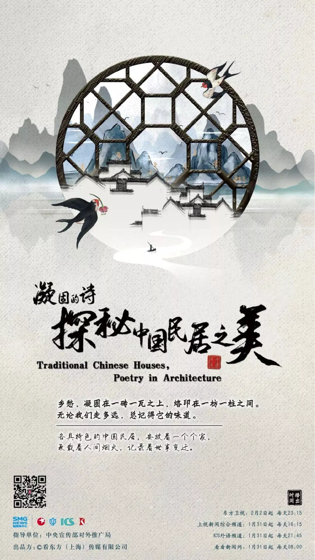 • 微紀(jì)錄片《凝固的詩?探秘中國民居之美》春節(jié)期間即將重磅推出