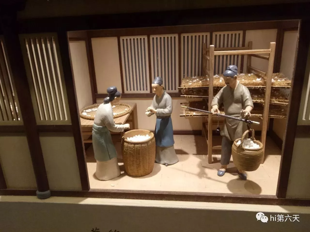 微縮模型,從養(yǎng)蠶到織出綢緞的過程。位于絲路館二樓大廳,細(xì)致地移不開眼