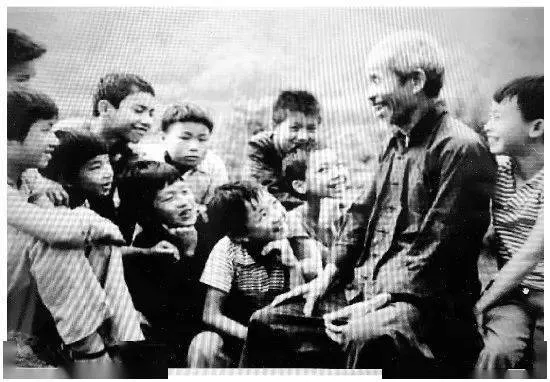 紅軍長(zhǎng)征突破湘江后失散在桂北的老紅軍劉華連生前給小朋友們講紅軍長(zhǎng)征的故事。(資料圖片)