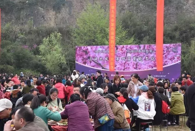 “尋夢(mèng)三峽紫荊園,祈福迎春鱘魚宴”。3月30日,三峽九鳳谷第四屆紫荊文化藝術(shù)節(jié)盛大開幕。來自全國各地的約2000名游客走進(jìn)三峽九鳳谷生態(tài)旅游區(qū),賞紫荊,看表演,品春宴,共享九鳳谷春日盛事。