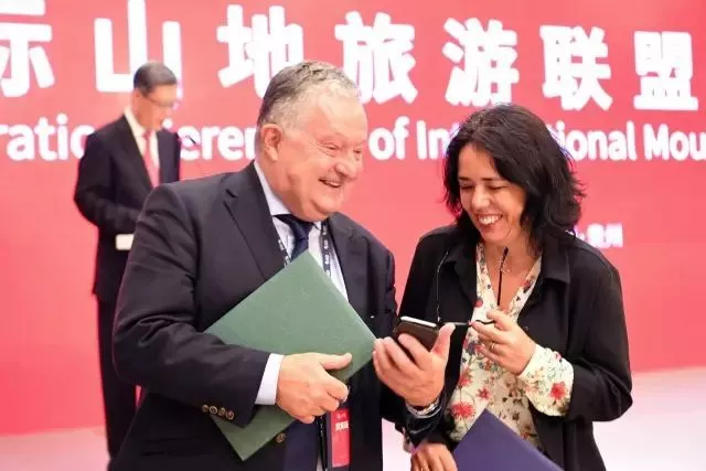 2017年8月15日,“國際山地旅游聯(lián)盟”成立儀式在貴州省興義市舉行。圖為首批拿到國際山地旅游聯(lián)盟理事、會(huì)員證書的代表分享喜悅。 李楓攝