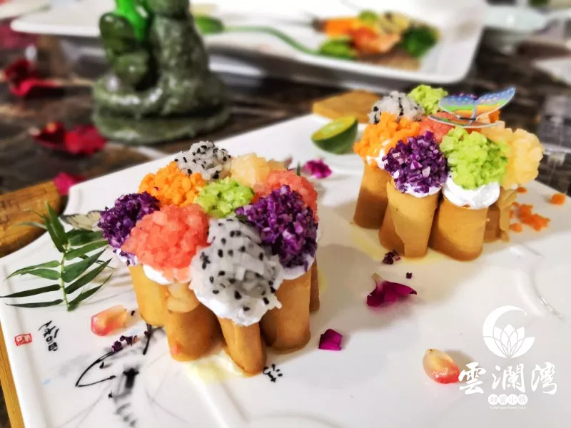 云瀾灣泓花宴,乃國內(nèi)頂級(jí)大廚專研古代花饌獨(dú)家創(chuàng)意一絕,融合了嘉善本地傳統(tǒng)工藝創(chuàng)意,集四季花海精華,將時(shí)令桂花、菊花、梅花、百合、茉莉等悉數(shù)入菜,突出綠色、簡(jiǎn)單、精致、品位等特點(diǎn),即能滋養(yǎng)身心,又富有文化性。